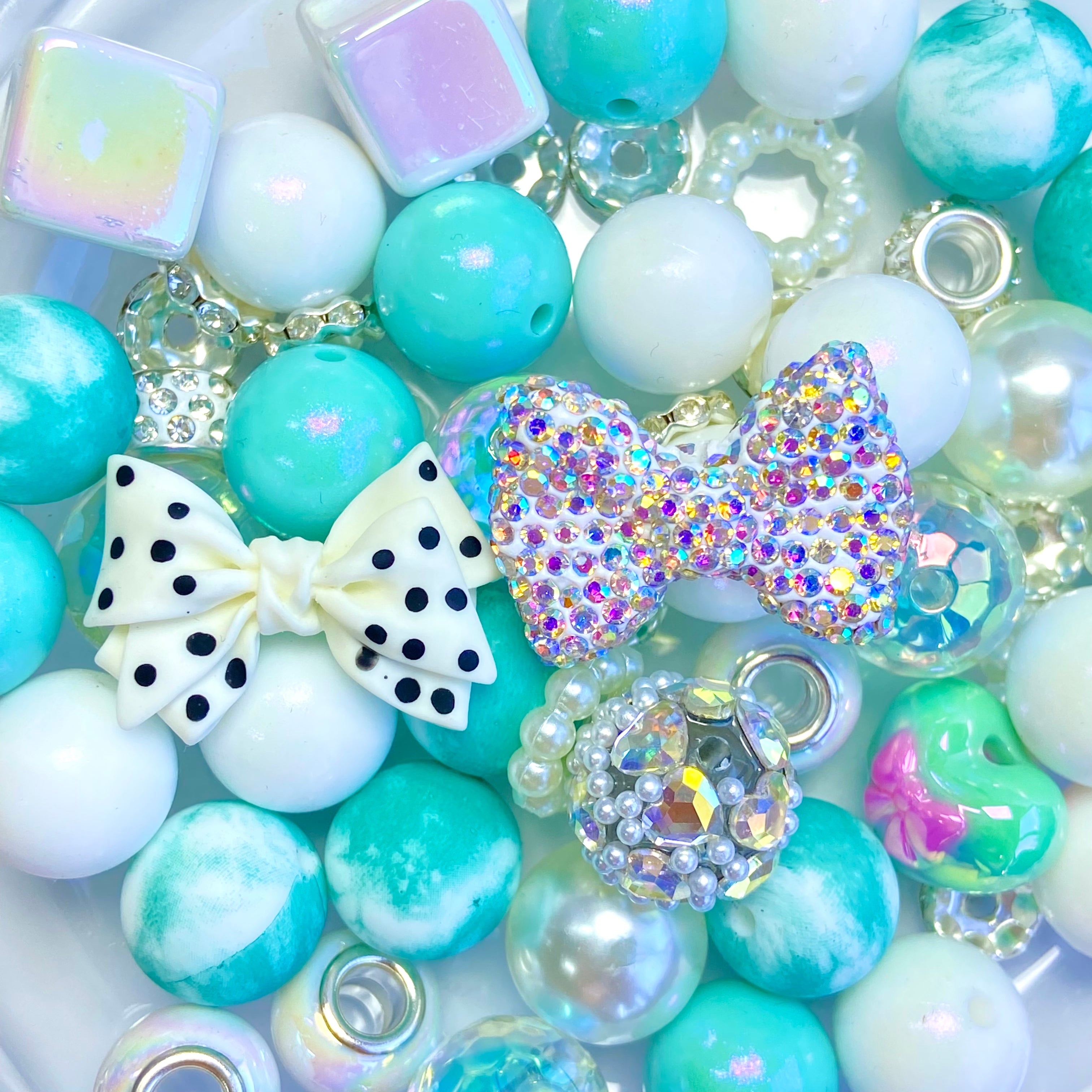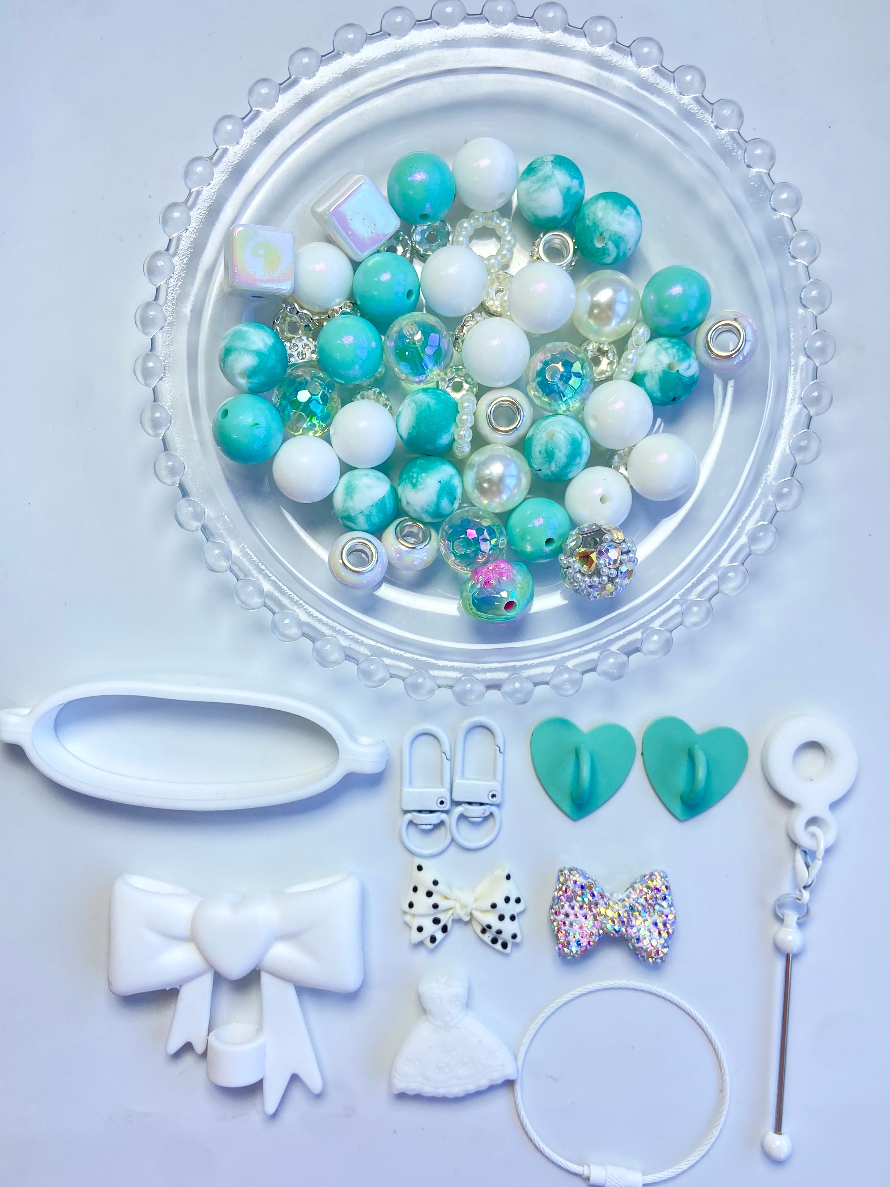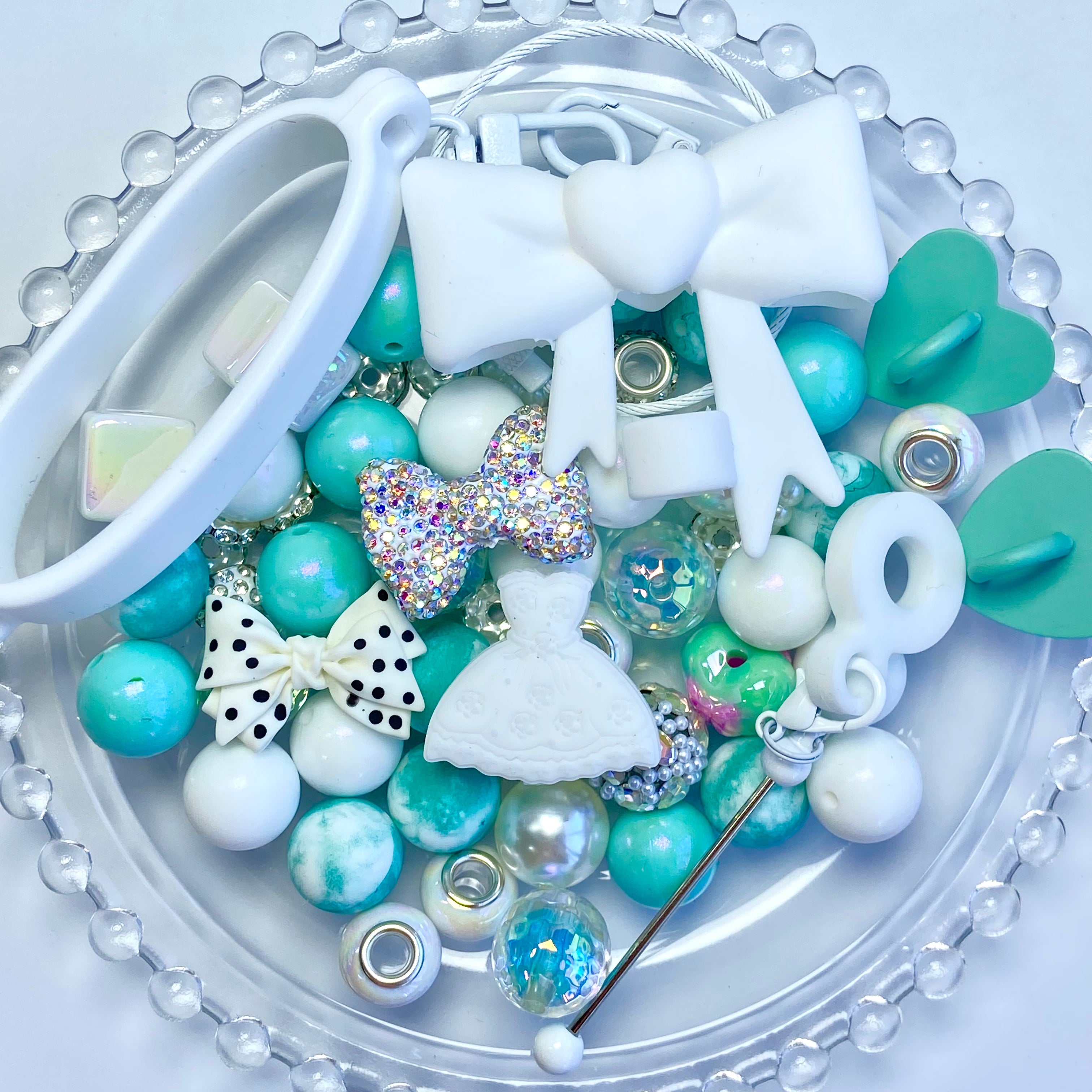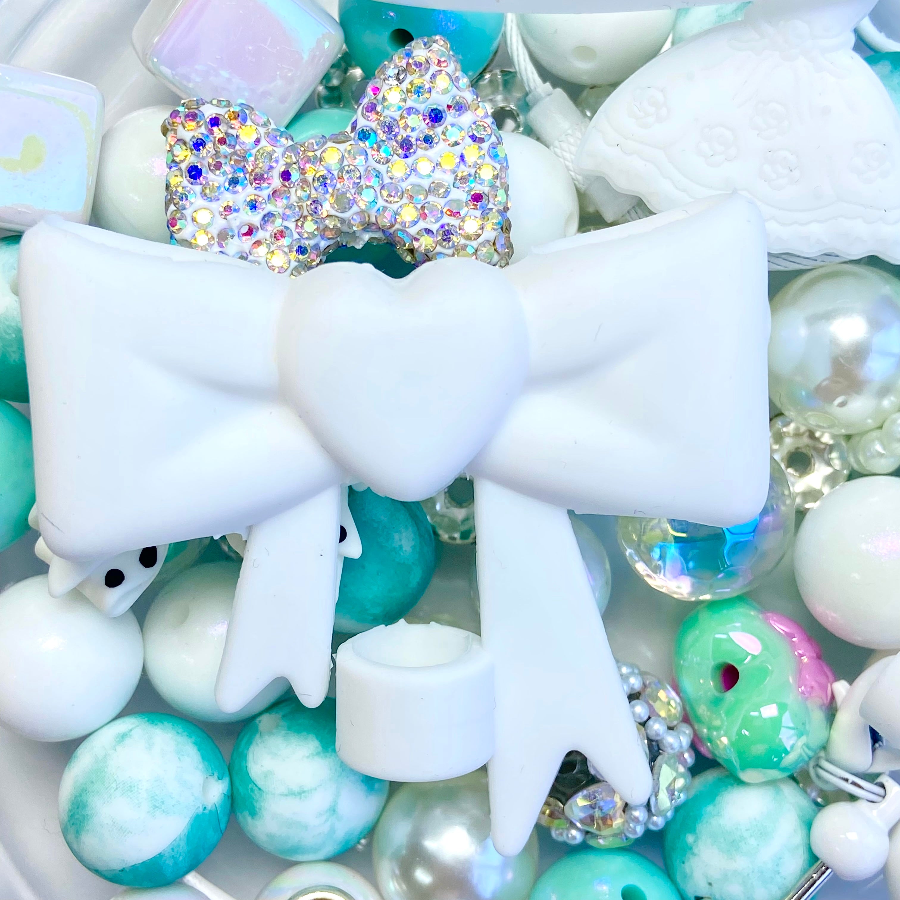 Silicone Beads Focal Bulk Kits D10-04 15MM Beads White Bowtie Straw Toppers Beads for Tumbler Cup Kits Blue
