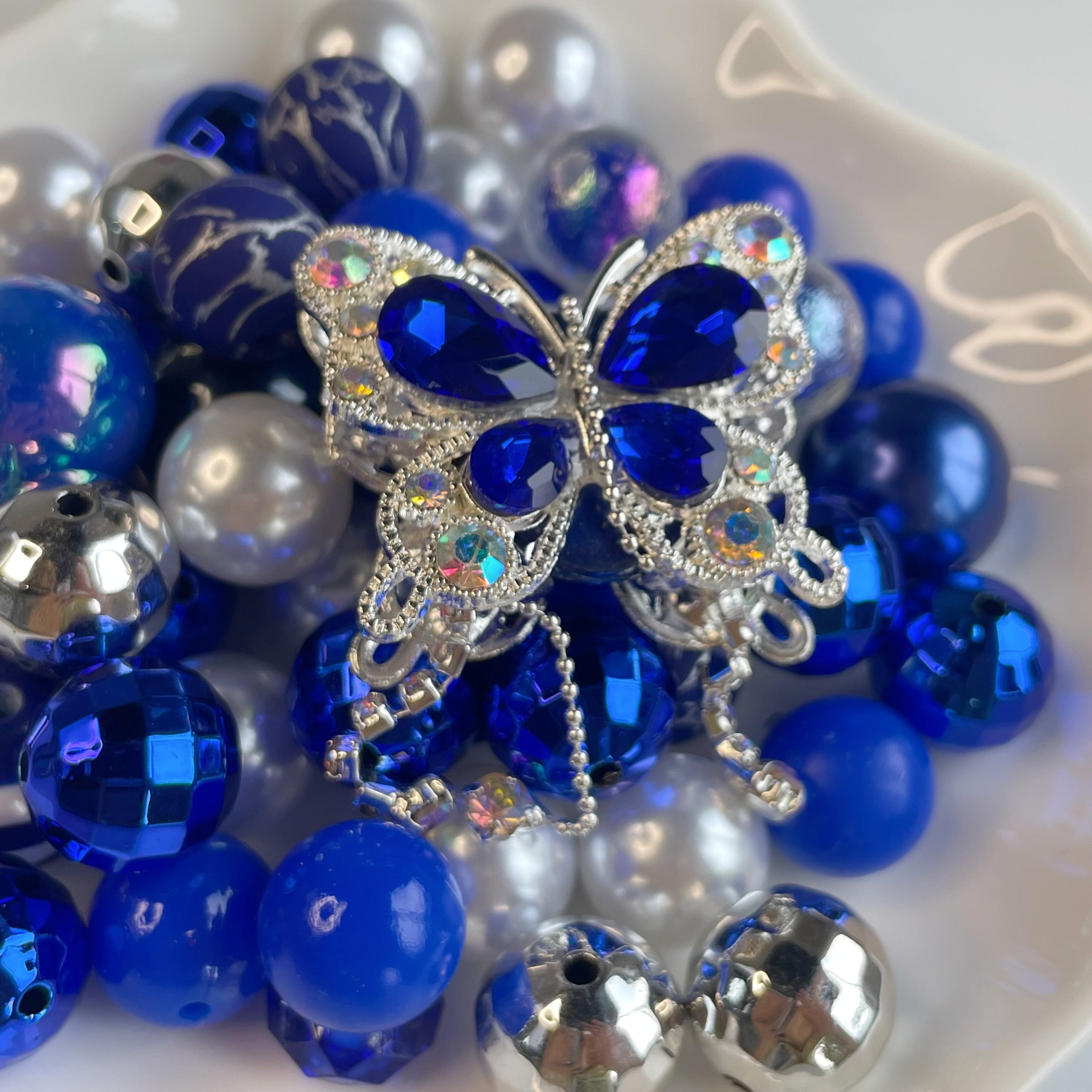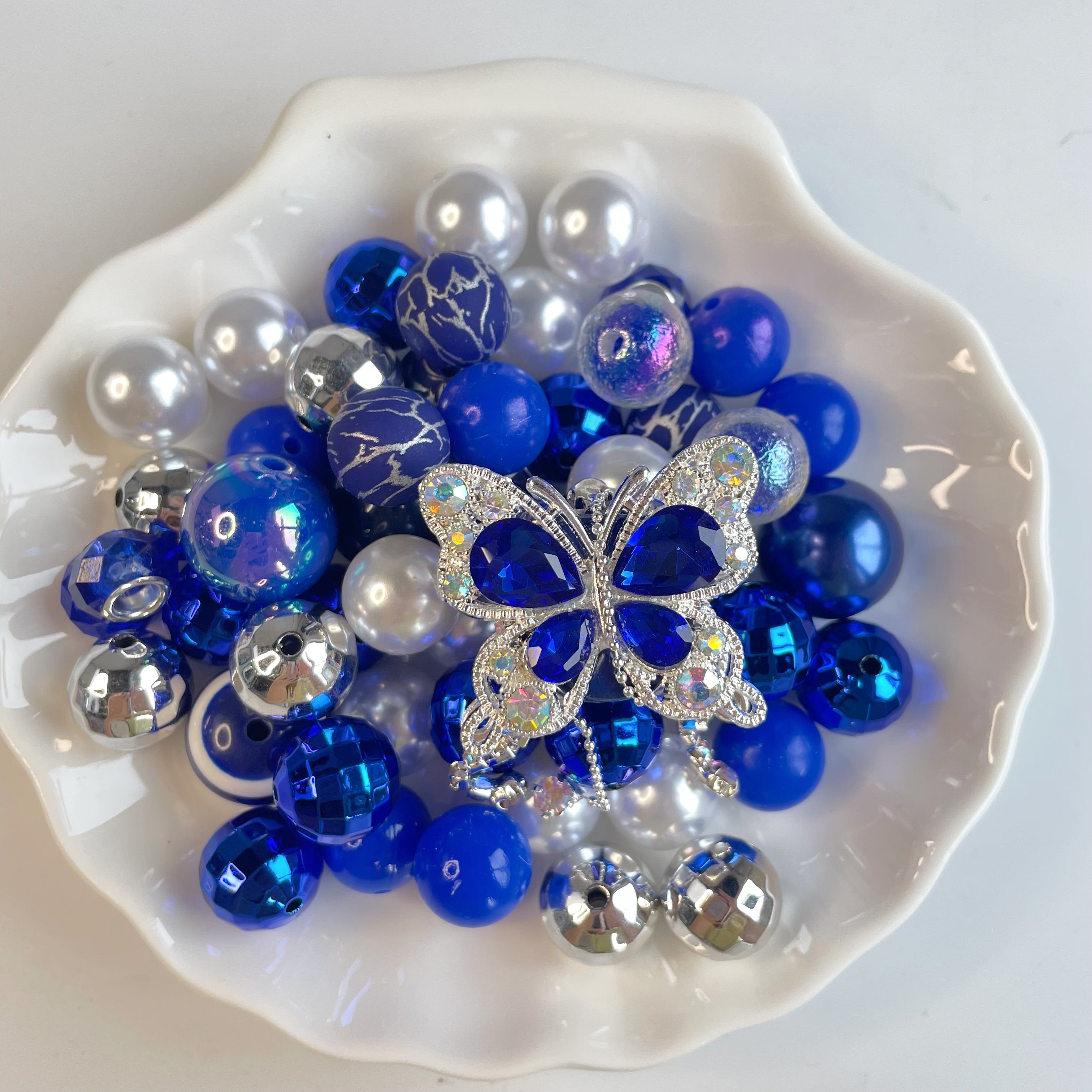 B-MIX-102 Silicone Beads Bulk Beads Mix Combo 15mm Solid Fancy Beads DIY&Craft Beads Bracelet Jewelry Girls Women Blue Butterfly