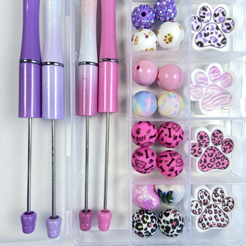 BP-149 Silicone Beads Beadable Pen Box Focals Beads Kit Set Dog Paw Focals 15MM Leopard Print Beads for Pen Blank Bulk Crafting&DIY Jewelry for Gift