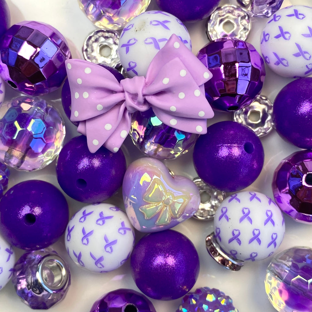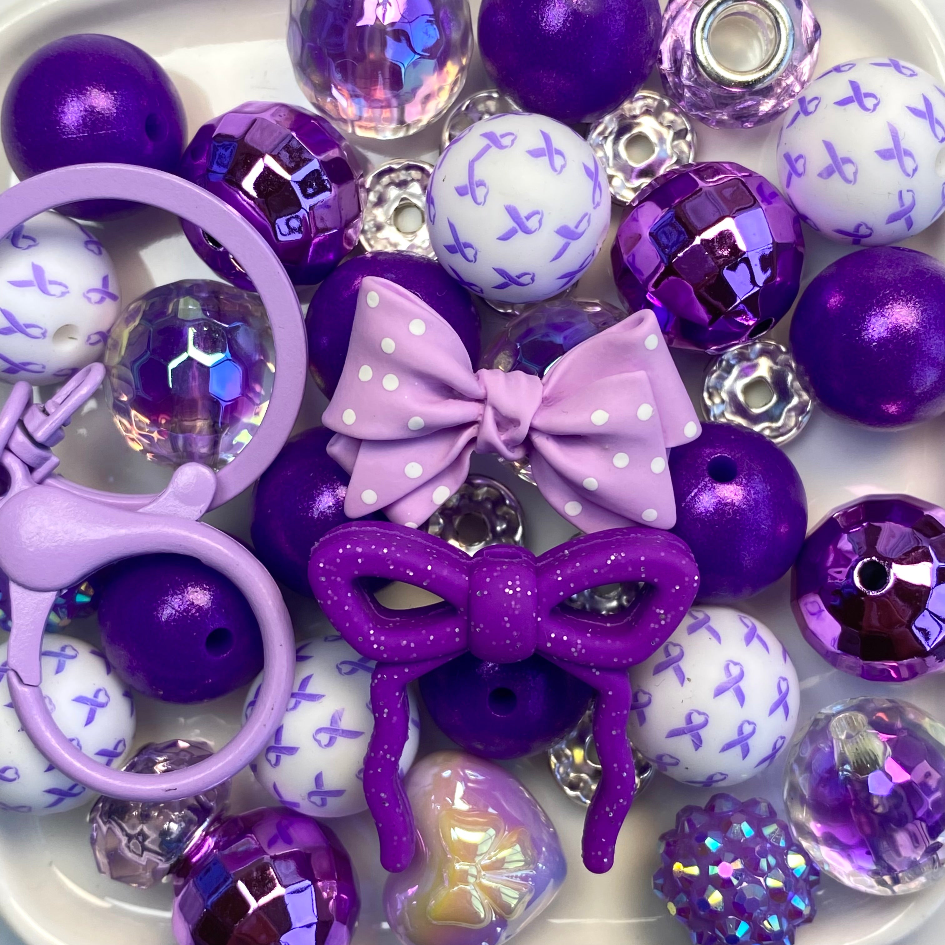 D6-200 Silicone Beads Focals Bulk Kits 15MM Bow Tie Focals Beads Ribbons Printed Beads DIY Pearls Beads for Keychain Purple